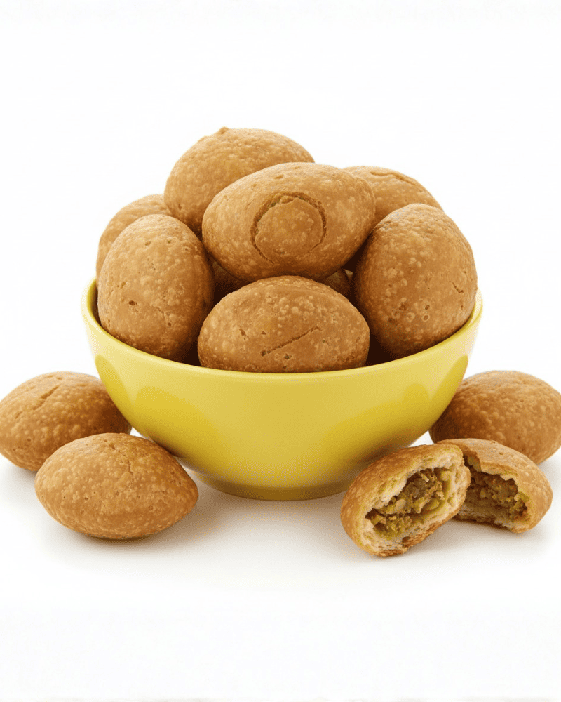 Namkeen Depo Rajbhog kachori is a premium version of the classic Indian dry mini kachori, inspired by traditional Rajbhog kachori namkeen recipes. These crunchy, flaky kachoris are prepared using high-quality wheat flour shells stuffed generously with spiced moong dal filling.